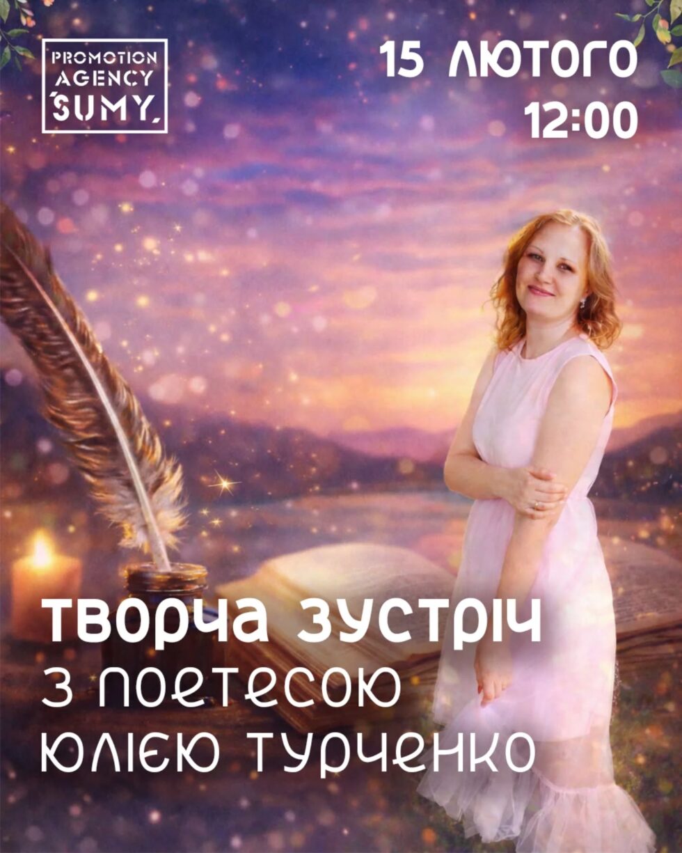 Сумська міська галерея запрошує в неділю, 15 лютого, на вечір щирої розмови про поезію, натхнення та силу слова з поетесою Юлією ТУРЧЕНКО.