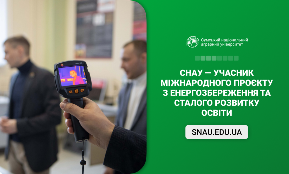 Сумський національний аграрний університет став одним із п’яти українських закладів вищої освіти, що долучилися до реалізації проєкту «Економія енергії та моніторинг енергоспоживання в будівлях закладів вищої освіти». Його тривалість — із вересня 2025 по листопад 2026 року, а мета — запровадження сучасних систем моніторингу енергоресурсів та підвищення ефективності їх використання у закладах освіти.