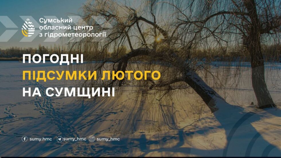 У лютому погода на Сумщині формувалась чергуванням циклонів та антициклонів з суттєвими зниженнями температури через затоки арктичного повітря. Спостерігались опади переважно у вигляді снігу, мокрого снігу, дощу та мряки.