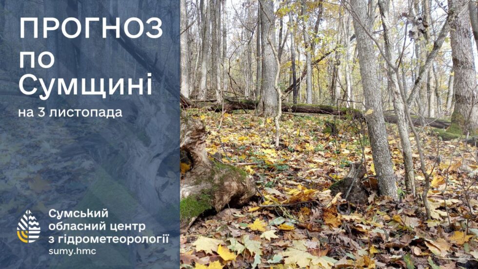 3 листопада: мінлива хмарність, без опадів. Вітер південний, 9-14 м/с. Температура повітря по області вночі +3°..+8°, вдень +9°..+14°, по м.Суми вночі +5°..+7°, вдень +11°..+13°.