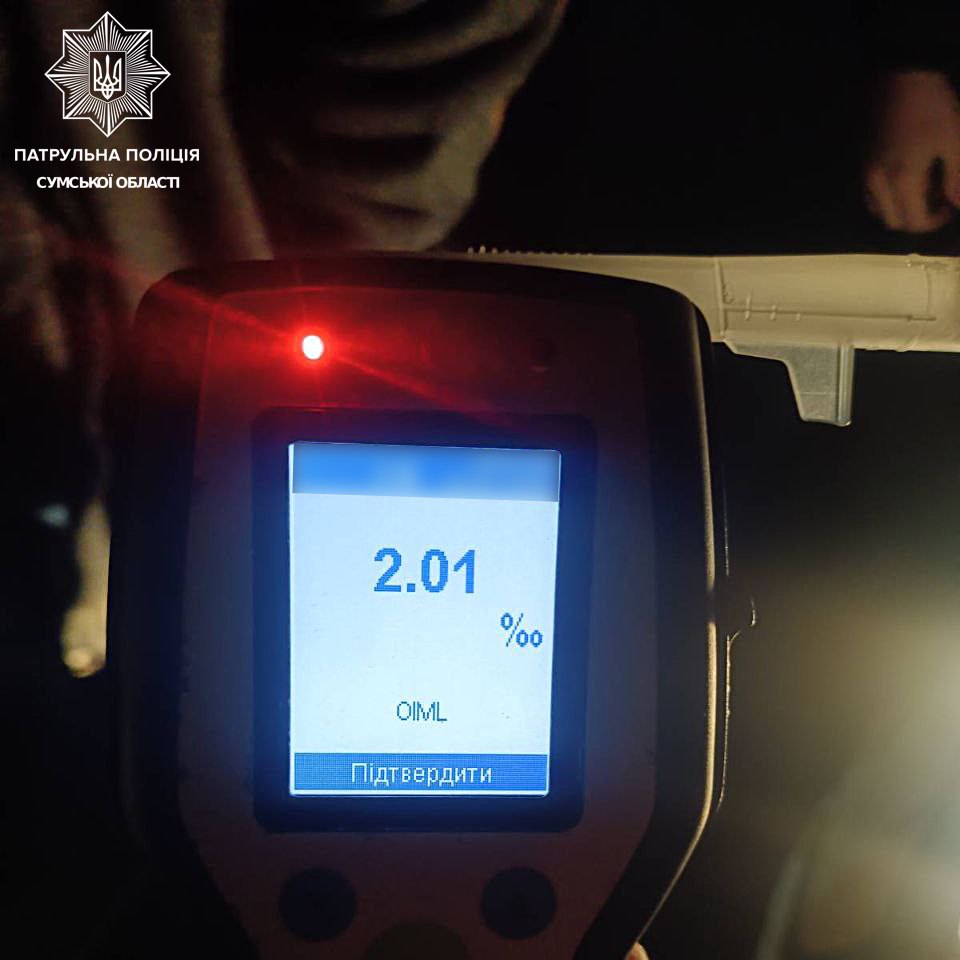 На одному з блокпостів Сум патрульні зупинили водія автомобіля Skoda. Під час спілкування з 50-річним керманичем інспектори виявили явні ознаки алкогольного сп’яніння, зокрема від нього було чутно запах алкоголю.