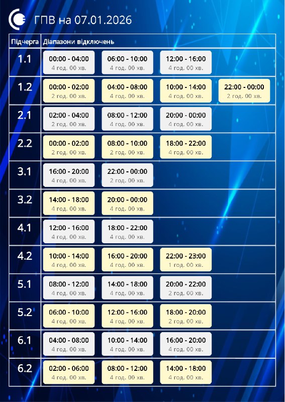 7 січня на Сумщині діятимуть ГПВ: від 6 до 12 годин без електрики
